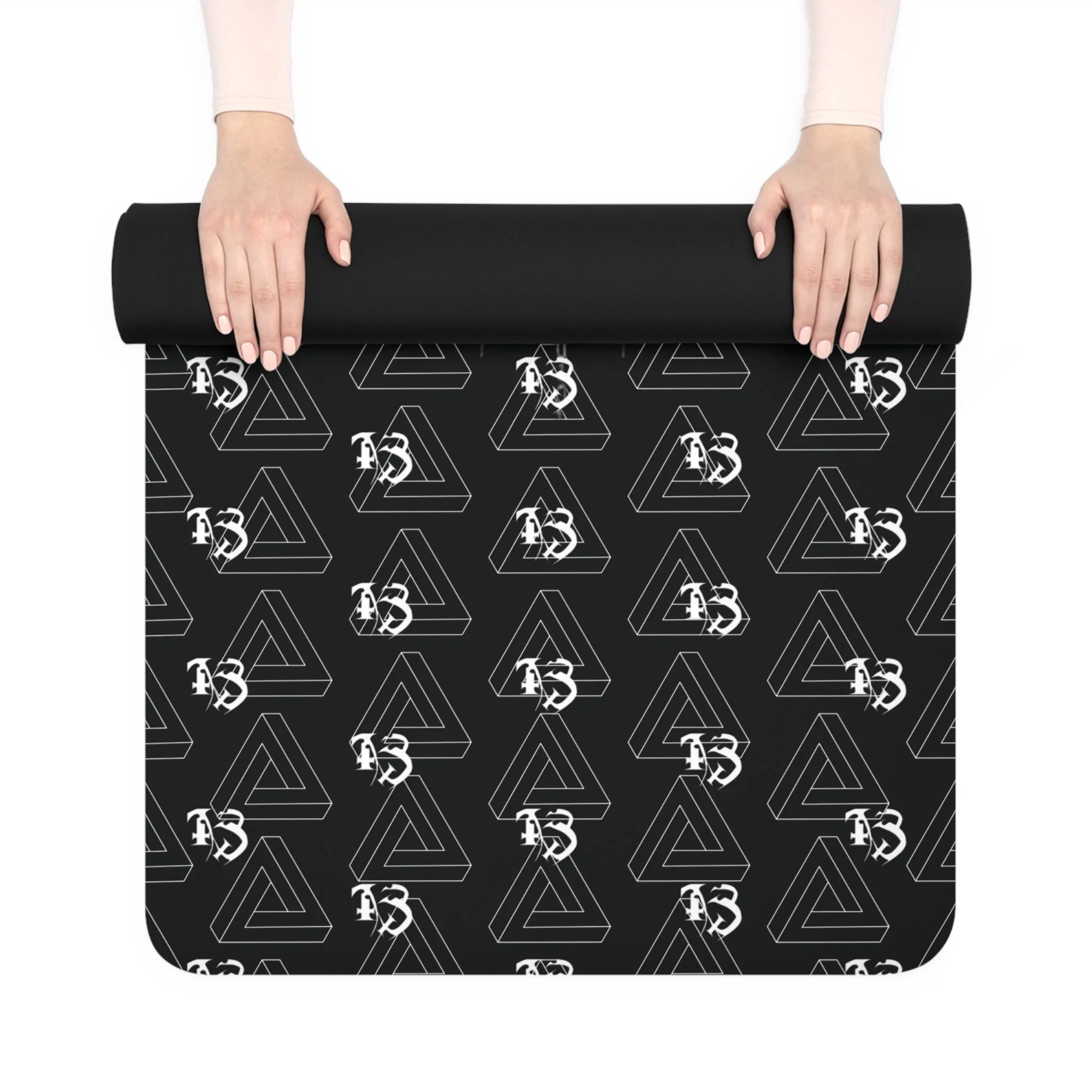 This rubber yoga mat brings dark, focused energy to your practice. A subtle skull motif emerges from a patterned field of small symbols, printed edge-to-edge on a matte microfiber suede surface that feels soft under the hands and feet. The natural rubber base grips hardwood and studio floors so breathwork and balance stays steady, while the 3mm thickness keeps the mat lightweight and easy to roll for city commutes or quick morning flows. Carry it with the included black polyester strap and let the low-key, gothic-inspired design anchor slow stretches, strength sequences, or meditation sessions—best kept out of direct sunlight to preserve the print’s depth.