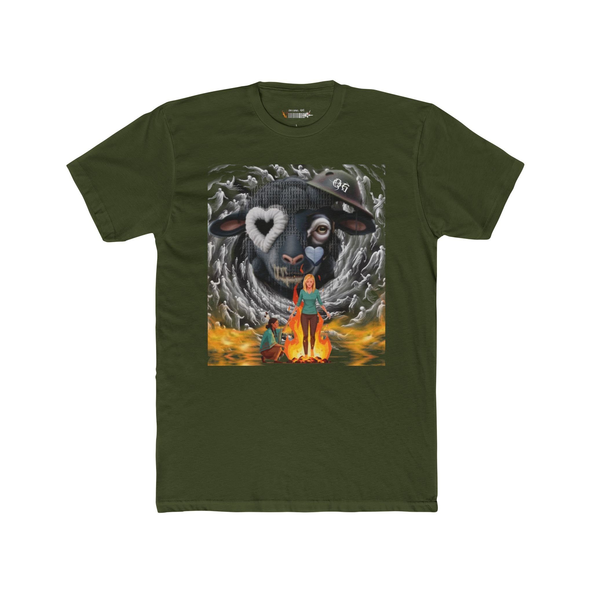 This cotton crew tee carries a dark, cinematic vibe—artwork wraps the front with a surreal nocturnal scene: a large, shadowy face with glowing heart-shaped eyes overlooks a small figure and a campfire surrounded by twisting, foggy branches. The back features gothic typography, emblematic symbols, and a masked figure, giving the shirt an underground, ritualistic edge. Lightweight and breathable, it layers easily under a jacket or stands alone as a statement piece for nights out, shows, or late-night hangs. The print’s textured DTF finish retains detail wash after wash, keeping the imagery sharp and moody. Wear it to channel introspective energy, add a punch to a minimalist outfit, or mark your place in a community that appreciates eerie, art-forward apparel.
