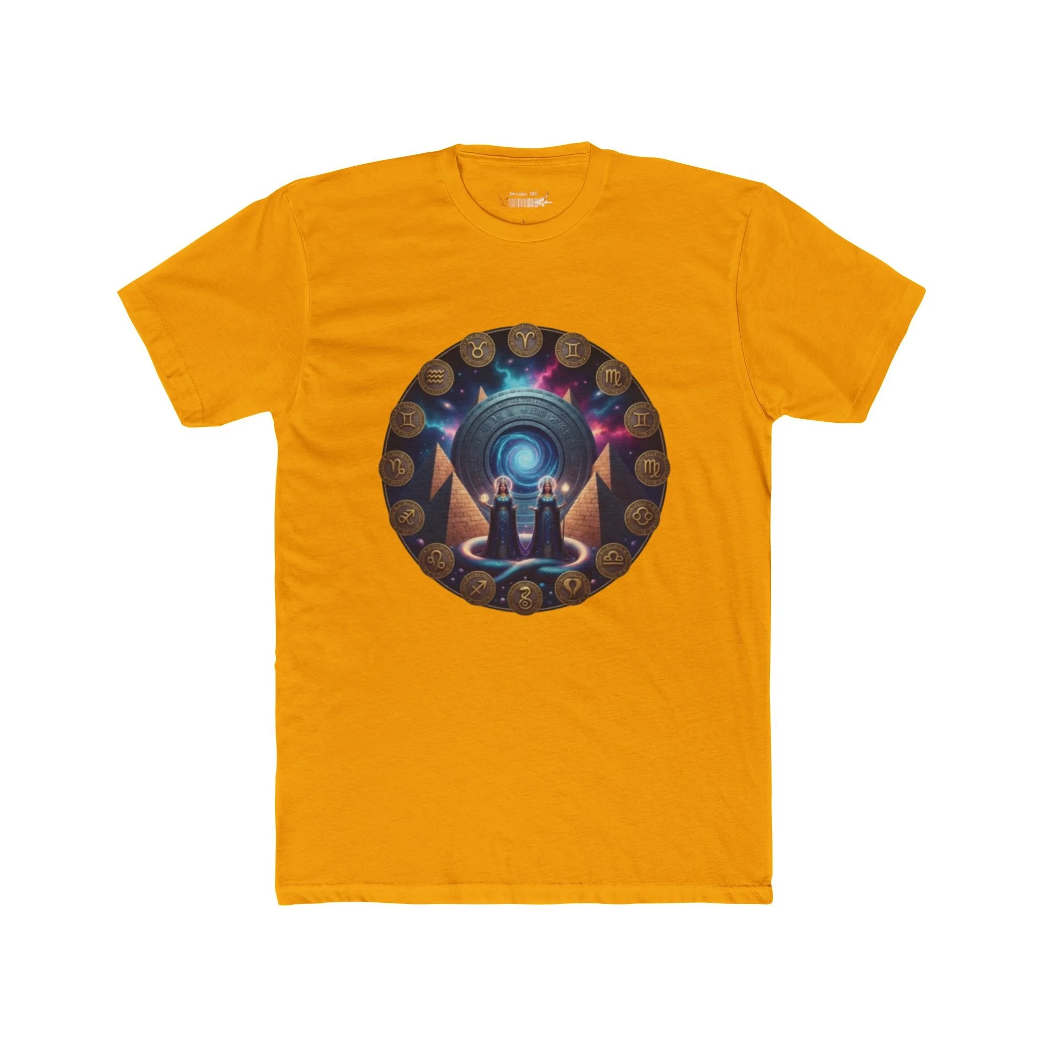This cotton crew tee carries an otherworldly scene across the chest — a circular, mystical portal framed by ancient symbols and warm, earthy tones. The image invites quiet curiosity: two small figures stand before a luminous orb, surrounded by glyph-like medallions, while the back bears a stylized emblem in a contrasting pale hue. Lightweight and breathable, the shirt reads like wearable art that settles into everyday life: pair it with worn denim, a canvas jacket, or layer under a flannel for late-night meetups or gallery hops. It’s crafted to keep its shape and color through repeated wears and washes, so the artwork stays vivid while the tee remains comfortable for long days and cool evenings.